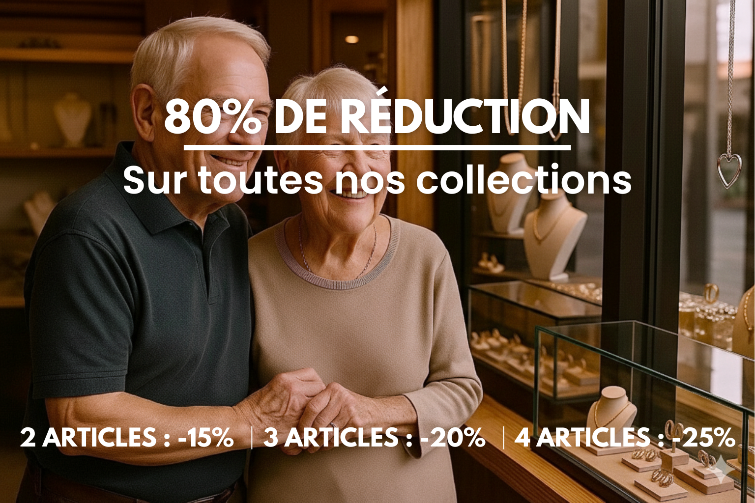 Depuis 33 ans, chaque pièce de notre collection est façonnée avec passion et héritage. Ce ne sont pas que des bijoux, c'est une partie de notre patrimoine, créée pour porter vos histoires et vos souvenirs. Pour vous remercier de nous avoir accompagnés toutes ces années, nous offrons jusqu'à 80% de réduction sur toute notre collection. Votre soutien nous va droit au cœur.