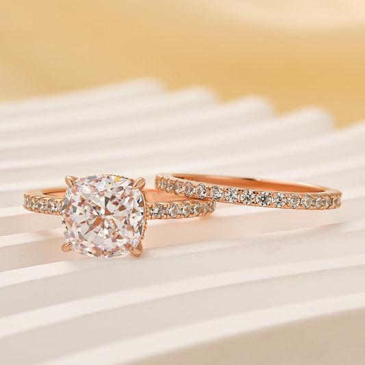 Bridal Cushion 2PC Ring Set | Rose Gold